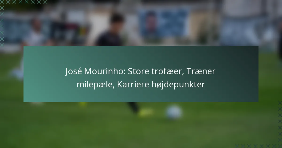 José Mourinhos trænerkarriere er præget af betydningsfulde milepæle, der viser hans taktiske snilde og evne til at opnå succes på tværs af forskellige ligaer. Hans rejse inkluderer tidlige præstationer, bemærkelsesværdige klubovergange og kampe, der har defineret hans trænerfilosofi.